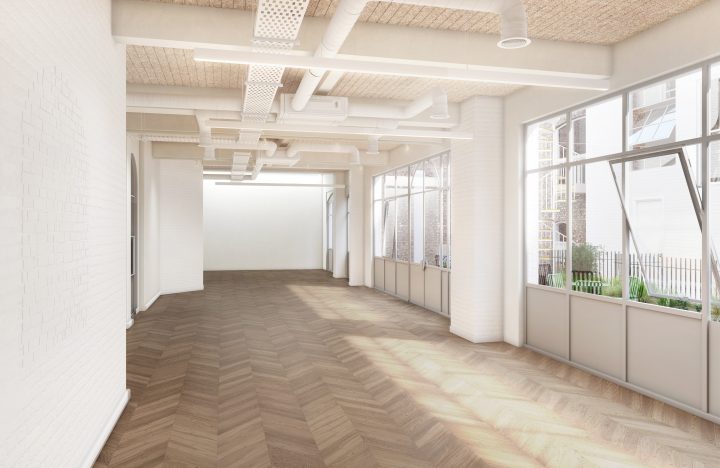 Dismountable, reversable alterations to a Grade II listed building in Farringdon, with a new mezzanine structure