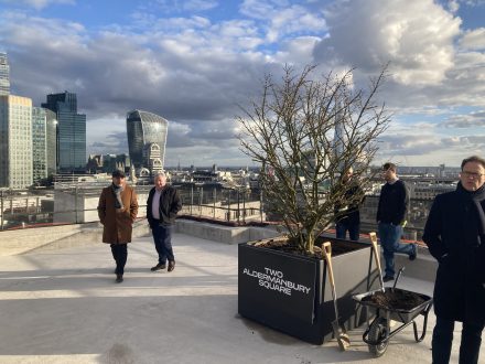 Davies Maguire’s Malcolm Archer and Jess Davies attended the topping out ceremony for 2 Aldermanbury Square yesterday.