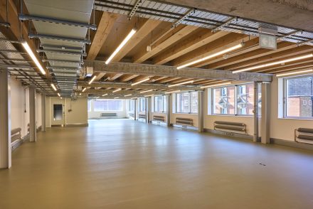A former 1970s textile workshop has been transformed into high-quality office space, with a three-storey lightweight steel and timber extension doubling the massing of the existing three-storey concrete frame. Davies Maguire designed the scheme to utilise the latent capacity of the foundations, minimising demolition and groundworks and enabling the existing building to be retained and strengthened, and given a new lease of life.