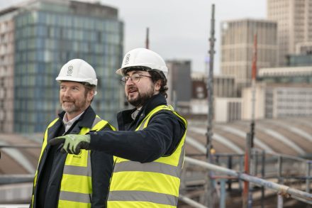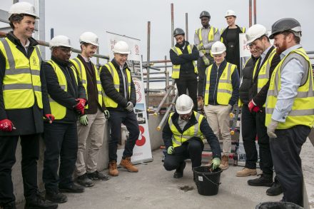Davies Maguire’s Seamus Maguire and Will Simmons were in attendance at the topping out ceremony for Lower Marsh, where the final bit of slab was filled.