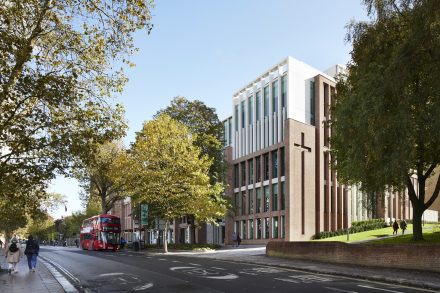 The Salvation Army Territorial Headquarters has received a 2025 Civic Trust Award. The sustainability focus of the project is evident throughout – with the building using efficient ribbed concrete slabs to minimise material use, sustainable drainage systems, and reused demolition waste. The atrium fosters connectivity and community, while allowing daylight to flood the space.