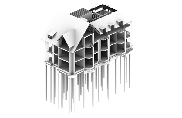 The apartments in the new-build element included interlocking 1.5 storey units designed to create high ceilinged loft style spaces. The unusual geometry and staggered floor levels created structural challenges in terms of both vertical support and transfer of horizontal load. These were overcome through carefully considered column locations and coordination with the architect, minimising the amount of structure required to provide lateral stability. The mews houses were located above an abandoned underground district heating boiler room, meaning that the existing structure had to be surveyed and justified for the additional loading from the houses.