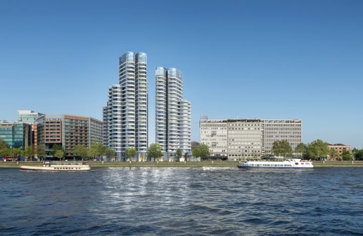 Three concrete frame mixed-use towers on the Albert Embankment in central London combine under the name The Corniche. The towers range from 15 to 26 storeys, with two levels of basement carparking.